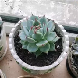 吉娃莲,景天科拟石莲花属,别名:吉娃娃,吉娃莲,植株小型,无茎的莲座叶盘非常紧凑。卵形叶较厚,带小尖,…