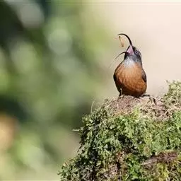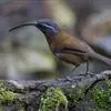 剑嘴鹛:中型鸟类,体长21-22厘米。嘴特别细长而向下弯曲,头顶和头侧烟灰色具长而窄的白色眉纹,…