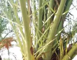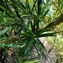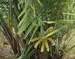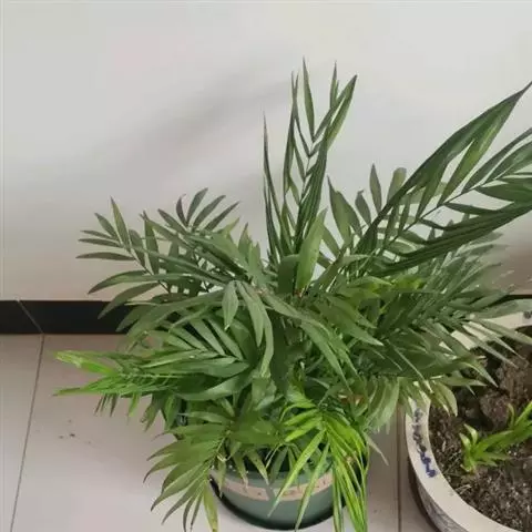 细叶棕竹,灌木,茎细如竹,多数聚生,有网状叶鞘。叶半圆形,掌状深裂,裂片狭长,阔线形,软垂,裂片7…