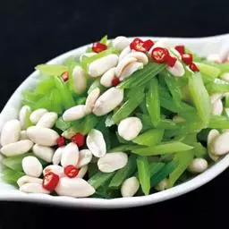 西芹花生米是用西芹、熟花生米并加以各种辅料制作成的凉菜,其特点既青翠可人,又脆口爽人。