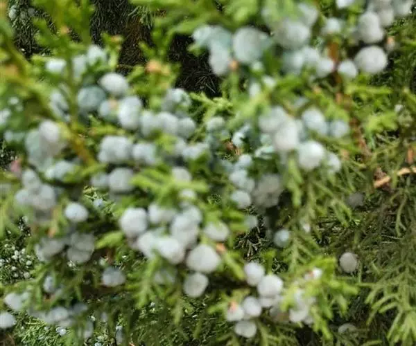 雌雄异株,稀同株,雄球花黄色,椭圆形,长2.5-3.5毫米,雄蕊5-7对,常有3-4花药。球果近圆球形,径6-8毫米,两年成熟,熟时暗褐色,被白粉或白粉脱落。