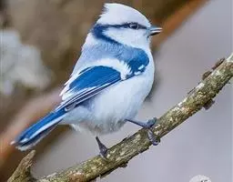 灰蓝山雀(Parus cyanus)体小(13厘米),嘴短,头白沾灰 灰蓝山雀 ,具蓝灰领环并与贯眼纹相连。下体白,上体蓝灰,翅蓝具白色粗翼斑。腹部有黑块。