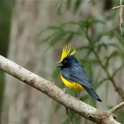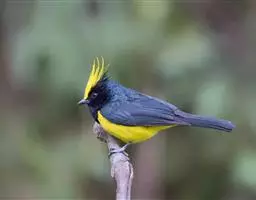 冕雀(Melanochlora sultanea)体极大(20厘米),具蓬松的 冕雀 黄色长型冠羽。头部黑色、下体黄,上体黑、翅黑。雌鸟头部色淡为深橄榄色,上体沾橄榄色,翅黑。