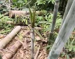 叶3至15片集生于枝顶;叶鞘光滑无毛或具极少量小毛;叶耳及鞘口繸毛均无;叶舌极发达,高可达10-15毫米,厚膜质或纸质,下部厚硬,顶部截形,干后脆而易于折断;叶柄较长,无毛或仅上面具少量短毛;叶片纸质或较厚,披针形,长6-25厘米,宽1.5-3.5厘米,顶端渐尖,基部不对称,上表面深绿色而具光泽,无毛或沿中脉的中下部具粗毛,下表面粉绿色,无毛。花枝未见。笋期4-5月。 [5-6]
