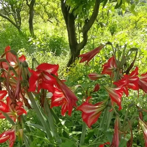 朱顶红 H. E. Moore),石蒜科属多年生草本植物,鳞茎近球形,并有匍匐枝;叶鲜绿色,…