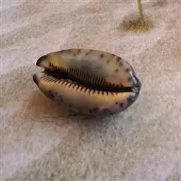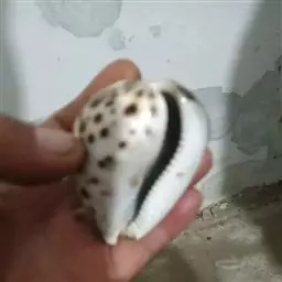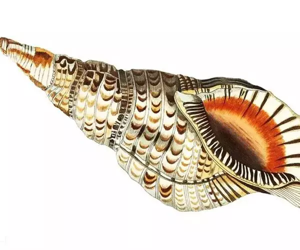 贝壳表面光亮,壳表为乳白色至黄褐色,并具有半月形或三角形的深褐色斑纹和新月形斑纹。壳口卵圆形,内面橘红色,具瓷光。外唇齿间有白色沟槽。轴齿白色,齿间为深褐色。厣角质,生长纹清细,核位于中央。 足部异常发达,肉可供食用。