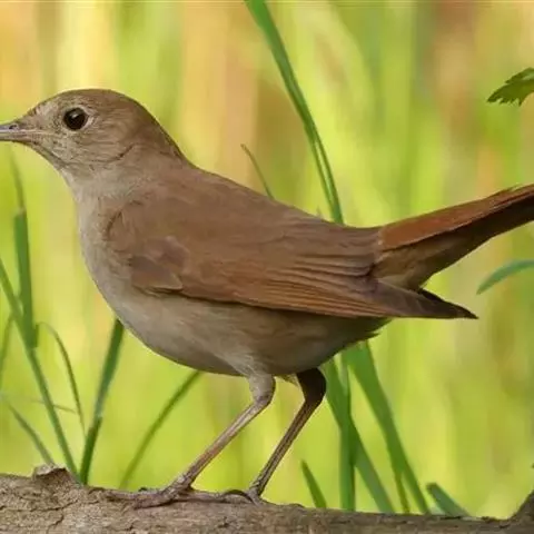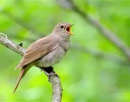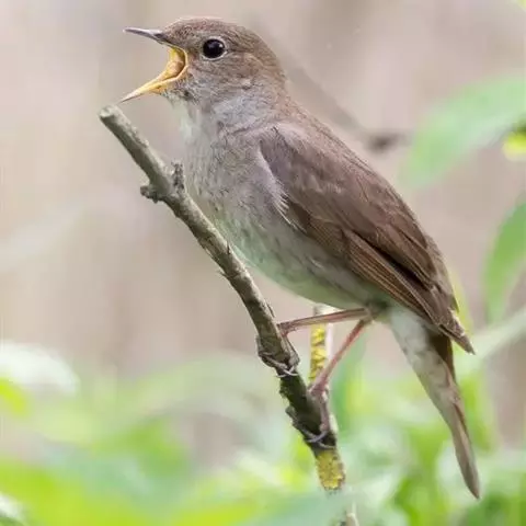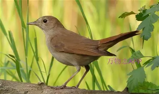 夜莺体色灰褐,羽色并不绚丽,但鸣唱非常出众,音域极广,是玩赏鸟的种类之一。