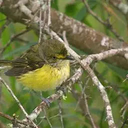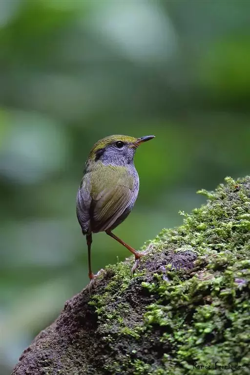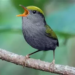 金冠地莺(学名:Tesia olivea):形态与灰腹地莺相似,上体橄榄绿,前额至头顶渲染亮金黄色;下体几乎纯暗石板灰色,下嘴基部橙红色或橙黄色。虹膜褐色;上嘴角褐色,下嘴基部橙红色或深橙黄色直至嘴尖;跗跖和趾褐色,爪褐色。