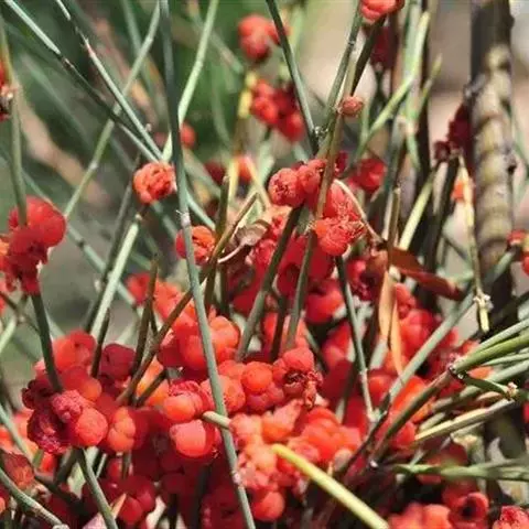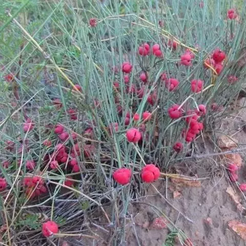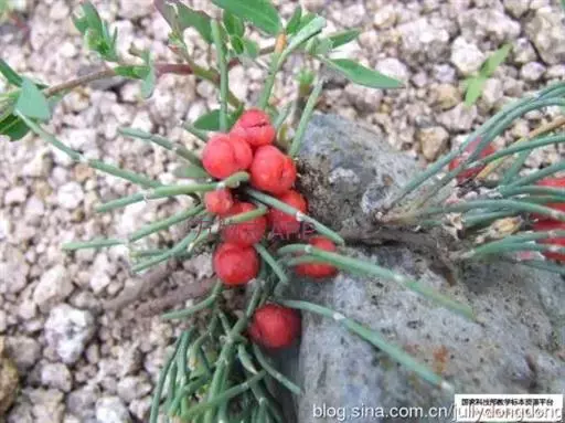 单子麻黄又称小麻黄,含生物碱,可供药用。麻黄科仅麻黄属一属,我国产12种,常见的还有中麻黄、草麻黄等。