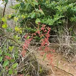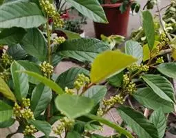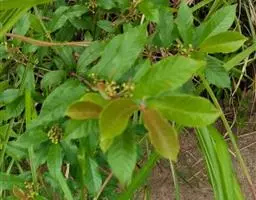 藤状或矮灌木,高达21米;小枝圆柱状,黄绿色,被密短柔毛。叶纸质,矩圆形或椭圆形,长5-20毫米,宽4-12毫米,顶端圆形或钝,具小尖头,基部圆形,上面绿色,下面浅绿色,两面无毛,侧脉每边4-5,稀6条;叶柄短,长不超过2毫米,被短柔毛;托叶披针形,稍长于叶柄,宿存。花白色,长4-5毫米,无毛,花梗长2.5-4毫米,无毛,通常数个至10余个密集成顶生聚伞总状花序,或有时1-5个簇生于花序下部叶腋,近无总花梗;花芽卵圆形,长过于宽,顶端钝;萼片条形或狭披针状条形,顶端尖,萼筒短,盘状;花瓣匙形,顶端钝。核果圆柱形,顶端钝,长5-6毫米,直径约3毫米,成熟时黑色或紫黑色,基部有宿存的花盘和萼筒;果梗长4.5-5毫米,被短柔毛。花期7-10月,果期11月。