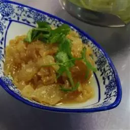 取海蜇头用清水浸泡2~3d,每日换水,漂去盐矾,捞出,切碎,干燥备用。内服:煎汤,30~60g,或用80℃水烫过或以姜、醋拌食。外用:适量,多用蜇皮,贴敷。每周1~2次。依个人口味烹调食用。食用凉拌海蜇时应适当放些醋。
