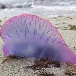 海蜇 海蜇通常是单体、营漂浮或游泳生活,极少数种是群体,有的群体可营固着生活。水母型身体呈铃形或倒置的碗形,或伞形,向外凸出的一面称外伞面(exumbrella)或上伞面,凹入的一面称下伞面(subumbrella),下伞面的中央有一下垂的管称垂唇(manubrium),垂唇的游离端为口,伞的边缘有一圈触手,钩手水母下伞的边缘向内伸出一圈窄的膜状结构,称为缘膜(velum),缘膜是水螅纲水母的特征。在钵水母类的水母均无缘膜。水母型的体壁结构与水螅型基本相似,也是由两层上皮肌肉细胞中间夹有中胶层构成,但水母型的中胶层远较水螅型发达。体壁围绕的胃循环腔也较发达,它或是一个简单的囊,或是被膜分隔成4个胃囊(stomachpouchs),由胃囊向伞缘伸出4条(水螅纲水母)或更多的(钵水母)辐射管(radialcanals),并与伞缘平行的环管(circularcanals)相连,由环管也可伸出离心的小管进入触手,直达触手末端。在伞缘或触手基部有感觉器官,例如眼点(eyespot)或平衡囊(statocyst)。