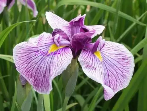 该变种为园艺变种,品种甚多,植物的营养体、花型及颜色因品种而异。叶宽条形,长50-80厘米,宽1-1.8厘米,中脉明显而突出。花茎高约1米,直径5-8毫米;苞片近革质,脉平行,明显而突出,顶端钝或短渐尖;花的颜色由白色至暗紫色,斑点及花纹变化甚大,单瓣以至重瓣。性喜潮湿,多栽于河、湖、池塘边,或盆栽。花期6-7月,果期8-9月。