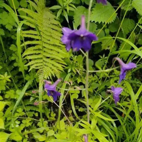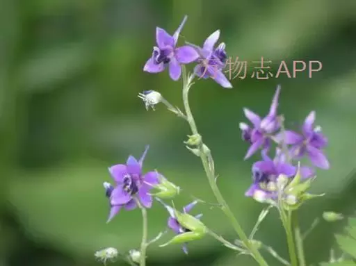 总状花序有(1-)2-15花;轴和花梗被反曲的短柔毛;基部苞片叶状,其他苞片小,披针形至披针状钻形,长2.5-4.5毫米;花梗长0.4-1.2厘米;小苞片生花梗中部,披针状线形,长2.5-4毫米;花长1-1.8(-2.5)厘米;萼片堇色或紫色,椭圆形至长圆形,长6-9(-11)毫米,外面疏被短柔毛,距钻形或圆锥状钻形,长5-9(-15)毫米,稍向上弯曲或近直;花瓣紫色,无毛,上部变宽;退化雄蕊与萼片同色,无毛,瓣片斧形,二深裂近基部;雄蕊无毛;心皮3,子房疏被短柔毛或近无毛。