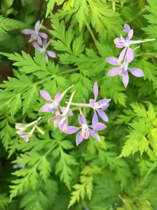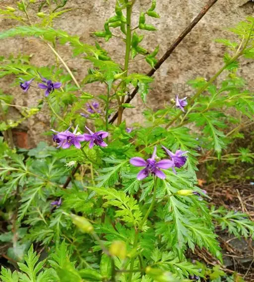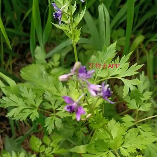 还亮草(学名:Delphinium anthriscifolium Hance)是毛茛科,翠雀属多年生草本植物,茎高可达78厘米,等距地生叶,分枝。羽状复叶,近基部叶在开花时常枯萎;叶片菱状卵形或三角状卵形,羽片狭卵形,表面疏被短柔毛,背面无毛或近无毛;叶柄无毛或近无毛。总状花序,有花多达15朵;轴和花梗短柔毛;基部苞片叶状,小苞片生花梗中部,披针状线形,萼片堇色或紫色,椭圆形至长圆形,退化雄蕊与萼片同色,无毛,种子扁球形,3-5月开花。