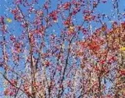 紫叶稠李(学名:Padus virginiana ‘Canada Red’)属蔷薇科、稠李属Padus virginiana的栽培种,落叶乔木,高可达15米,叶片初生为绿色、有光泽,秋后变为红色,整个生长季节,叶片变色期较长。花白色。果球形,较大,成熟时为紫黑色,4月底-5月中旬开花,7-8月结果。