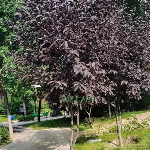 紫叶稠李是一种高大落叶乔木。高度可达到15米,冠幅5米。叶片初生为绿色。叶片有光泽。进入5月后随着气温升高,逐渐转为紫红色,秋后变为红色,整个生长季节,叶片变色期较长。花期4月底-5月中旬,花白色。果球形,较大,成熟时为紫黑色,果熟期7-8月。 紫叶稠李