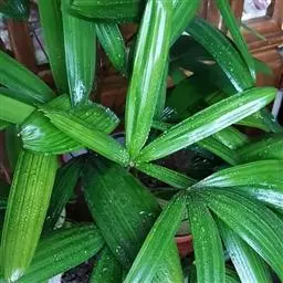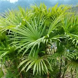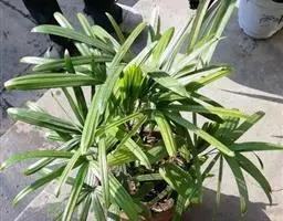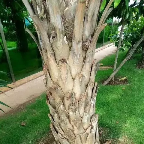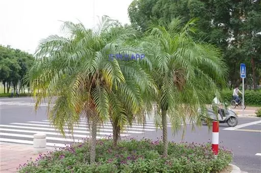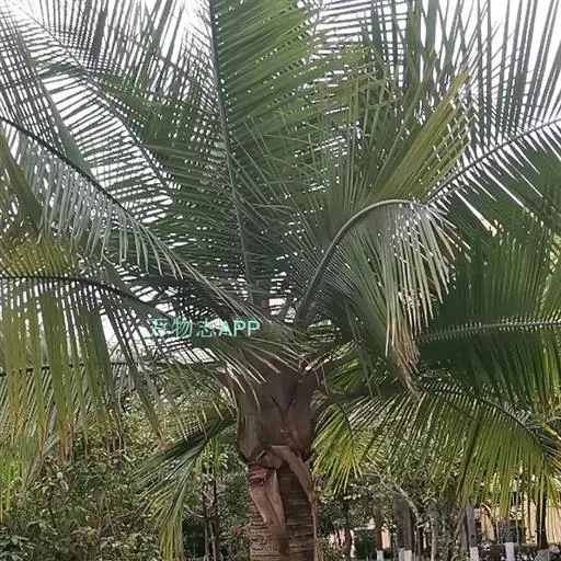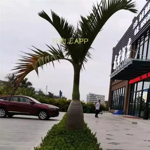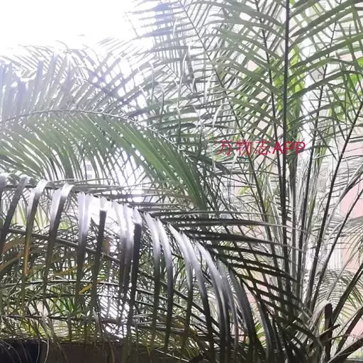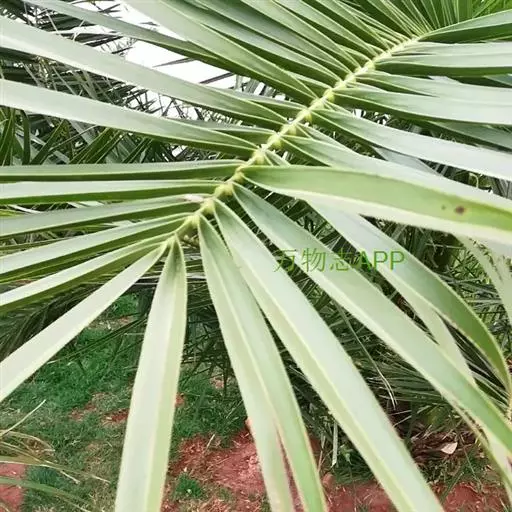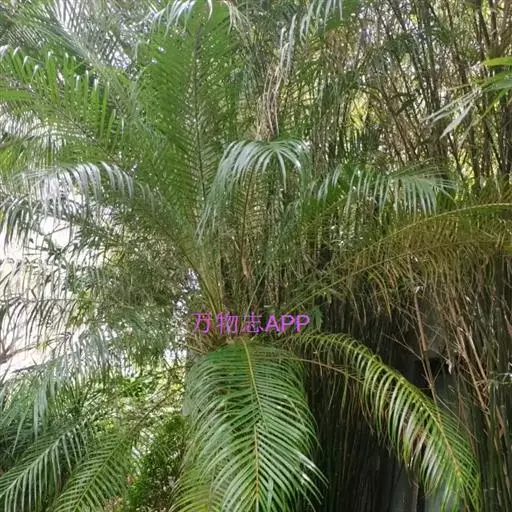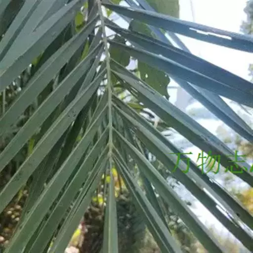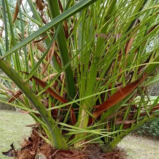 茎丛生或单生,高2-5米,直径达30厘米以上。叶长达2米;羽片线形,长15-35厘米,宽10-15毫米,单生或2-3片聚生,呈4列排列。佛焰苞长15-20厘米,褐色,不开裂为2舟状 瓣;花序梗长60厘米以上;雌花序分枝短而粗壮,长7-15厘米;雄花近白色;花萼长1-1.5毫米,顶端具3齿;花瓣3,长4-5毫米,宽1.5-2毫米;雄蕊6;雌花花萼长约1毫米,顶端不具三角状齿;花瓣圆形,直径约2毫米;心皮3,卵形,长约15毫米,宽8毫米。果实长圆形,长l.5-2厘米,成熟时紫黑色,基部具宿存的杯状花萼。花期4-5月,果期6-10月。