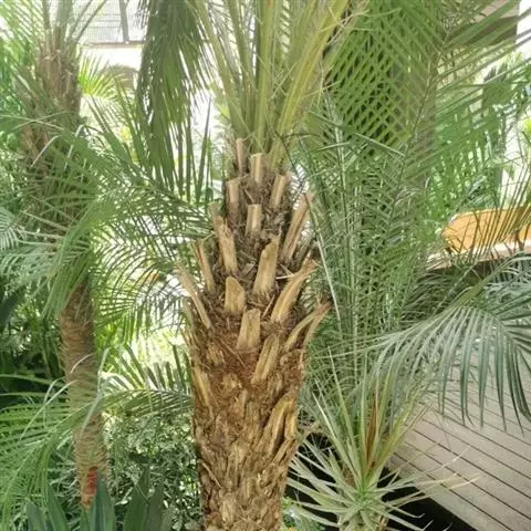 刺葵(Phoenix hanceana Naud.)棕榈科植物,茎丛生或单生,高2-5米,叶长达2米,羽片线形,雌花序分枝短而粗壮,雄花近白色,花瓣圆形,果实长圆形,长1.5-2厘米,成熟时紫黑色,花期4-5月,果期6-10月。刺葵产于台湾、广东、海南、广西和云南等省区,生于海拔800-1500米的阔叶林或针阔混交林中。刺葵树形美丽,可作庭园绿化植物,果可食,嫩芽可作蔬菜,叶可作扫帚。