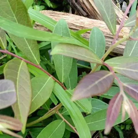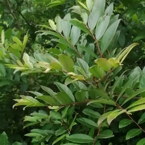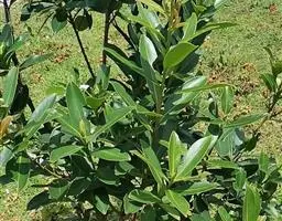 常绿灌木或乔木,通常高1-3米,稀7-12米;除子房和蒴果外,全株均无毛。叶片革质,椭圆形、长圆形或长圆状披针形,长6-16厘米,宽2.5-6厘米,顶端钝或急尖,基部急尖或阔楔形而稍下延,两侧近相等,上面深绿色,下面淡绿色,干后黄绿色;侧脉每边5-7条;叶柄长3-5毫米;托叶三角状披针形,长2.5-3毫米。