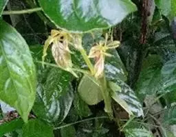 花簇生于叶腋内,雌雄花分别着生于不同的小枝上或雌花1-3朵生于雄花束内;雄花:花梗长8-10毫米;萼片6,倒卵形或长倒卵形,长约3毫米,黄色;雄蕊5-6;雌花:花梗长2-4毫米;萼片6,3片较大,3片较小,大的卵形,小的狭卵形,长2.5-3毫米;子房圆球状,6-8室,密被短柔毛,花柱合生呈卵形,长不及1毫米,约为子房长的-半,顶端近截平。蒴果近球状,直径12-18毫米,高7-10毫米,顶端常凹陷,边缘具6-8条纵沟,顶端被微柔毛,后变无毛。花期4-9月,果期7月-翌年2月。
