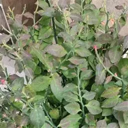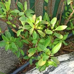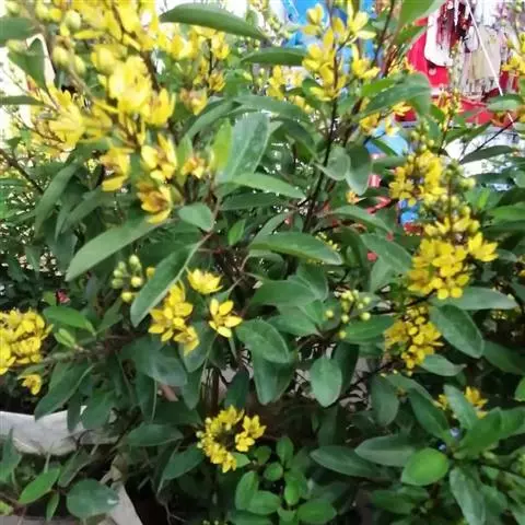 金英常绿灌木,株高约50-160厘米,嫩茎红色。叶片绿色,对生,椭圆形,先端尖,基部楔形,全缘。…