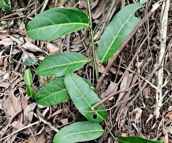 常绿攀援木质藤本;嫩枝绿色,老枝褐色,具白蜡层。叶革质,椭圆形、长圆状椭圆形或卵状椭圆形,长7—15厘米,宽4—6厘米,先端短渐尖或急尖,基部阔楔形或圆形,两面均无毛;侧脉每边6—7条,网脉稀疏,在叶面不明显,在叶背明显凸起;叶柄长1.5—2.5厘米。