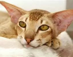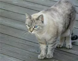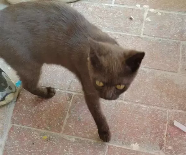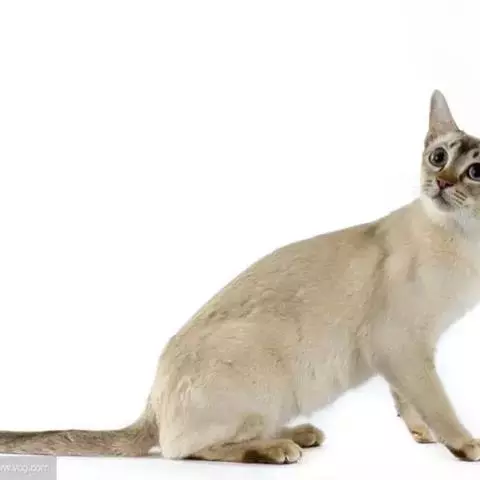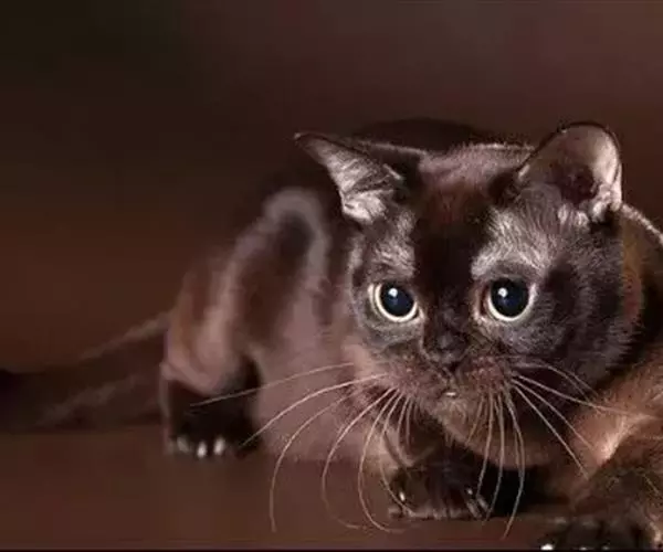 头呈三角形,有较少的绒毛,头略短于泰国猫,下颔骨强壮,颧骨高,鼻子略短,耳朵基部较宽,耳尖呈圆弧形。眼睛上眼眶向上吊,下眼眶为圆形,眼睛为金黄色,两眼间距离较宽。体型中等,肌肉发达,长颈、圆胸,尾长而直,呈锥形。四肢细长,前肢较后肢短,脚爪小,呈椭圆形。被毛短有光泽,如缎子一般,毛色为深褐色 。