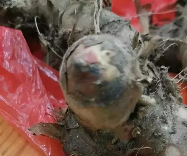 又称腐烂病或青枯病,是姜生产中最常见、且在各地区普遍发生的一种毁灭性病害。发病地块一般减产10%-20%,重者减产50%以上,甚至绝产。该病属于细菌性病害,主要为害地下茎或根部。一般在贴近地面的地下茎先染病。肉质茎受害,初成水渍状,黄褐色、无光泽,后内部组织逐渐腐烂,仅留皮囊,挤压病部可流出污白色、米水状、恶臭的汁液。根部发病,初期呈水渍状,后黄褐色,最终腐烂。地上茎受害呈暗褐色,内部组织腐烂,仅留纤维。叶片受害呈凋萎状,叶色淡黄,边缘卷曲,直至全株下垂死亡。