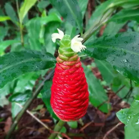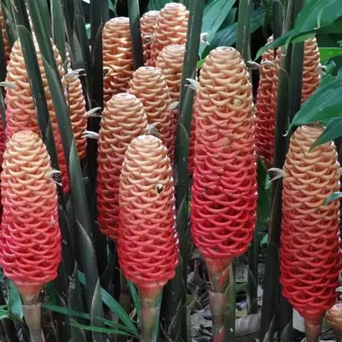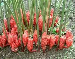 珊瑚姜是姜科、姜属植物。株高近1米。叶片长圆状披针形或披针形,长20-30厘米,宽4-6厘米,…
