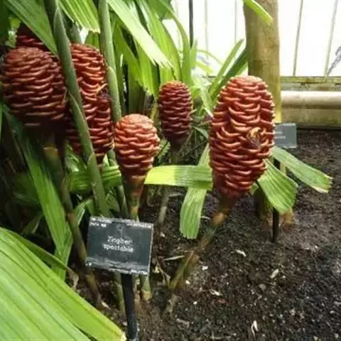 姜(学名:Zingiber officinale Rosc.),姜科姜属多年生草本植物。开有黄绿色花并有刺激性香味的根茎。株高0.5-1米;根茎肥厚,多分枝,有芳香及辛辣味。叶片披针形或线状披针形,无毛,无柄;叶舌膜质。总花梗长达25厘米;穗状花序球果状;苞片卵形,淡绿色或边缘淡黄色,顶端有小尖头。花萼管长约1厘米;花冠黄绿色,裂片披针形;唇瓣中央裂片长圆状倒卵形。