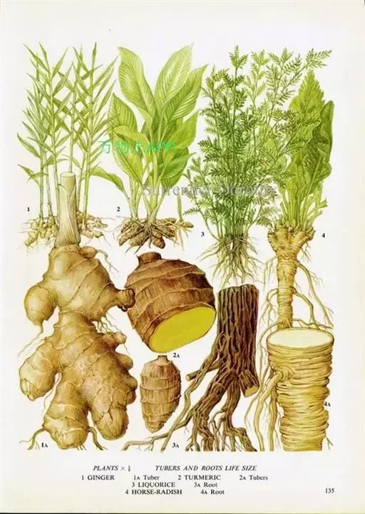 姜 株高0.5-1米;根茎肥厚,多分枝,有芳香及辛辣味。
