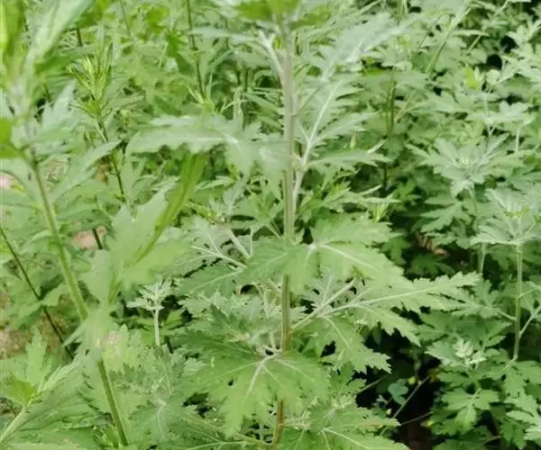 艾叶第1茬收获期为6月初,于晴天及时收割,割取地上带有叶片的茎枝,并进行茎叶分离,摊晒在太阳下晒干,或者低温烘干,打包存放。7月中上旬,选择晴好天气收获第2茬,下霜前后收取第3茬,并进行田间冬季管理。