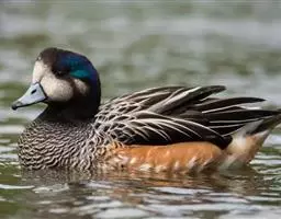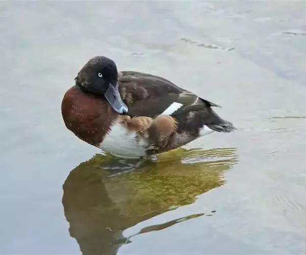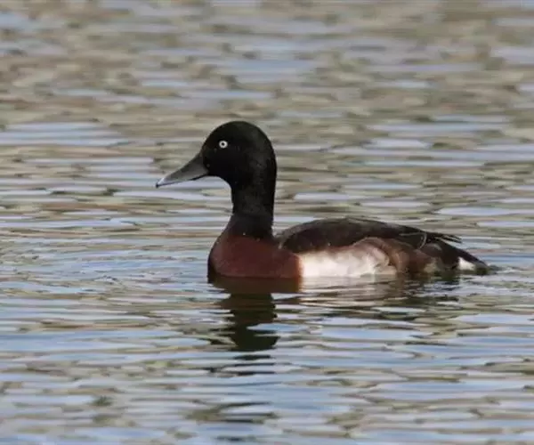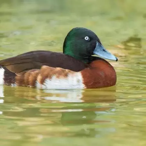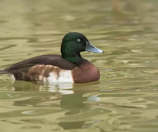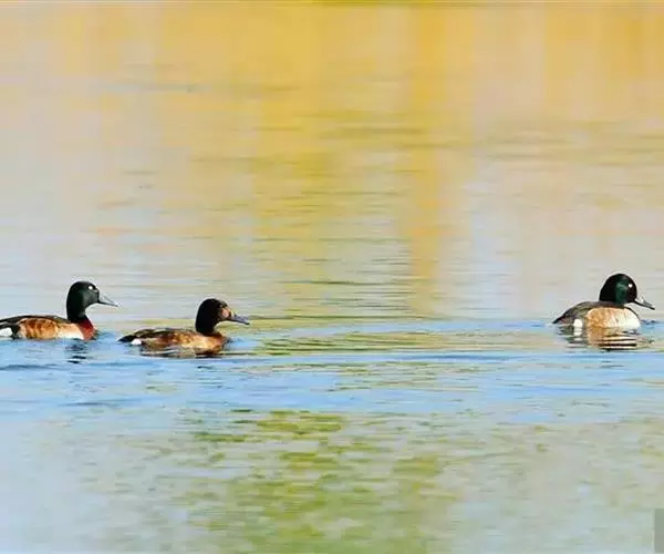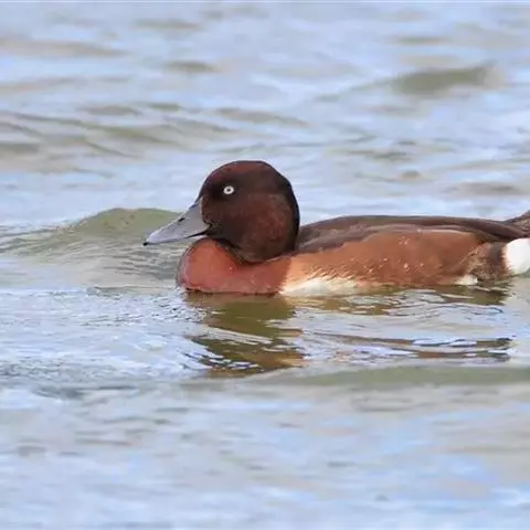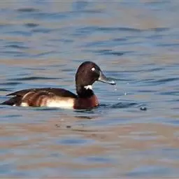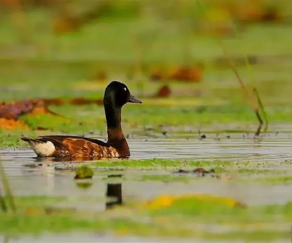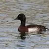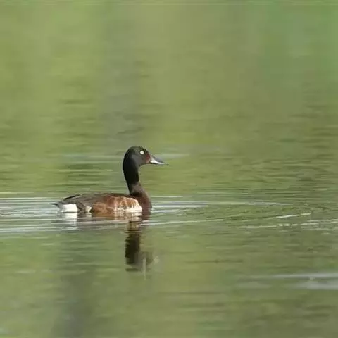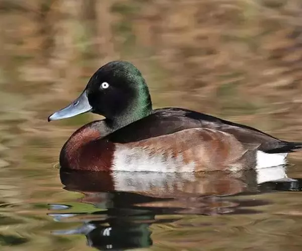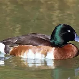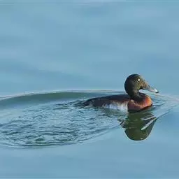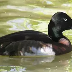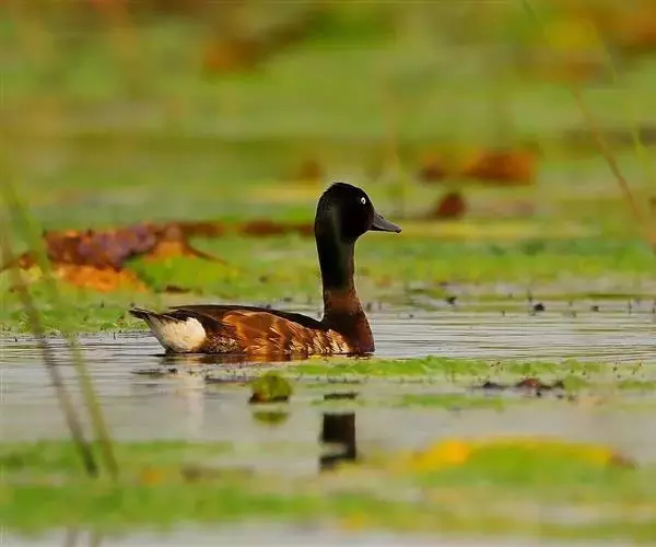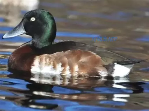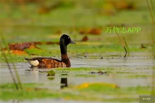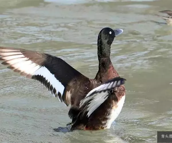 青头潜鸭(学名:Aythya baeri):是雁形目鸭科潜鸭属的鸟类。体圆,头大,雄鸟头和颈黑色,并具绿色光泽,眼白色。上体黑褐色,下背和两肩杂以褐色虫蠹状斑,腹部白色,与胸部栗色截然分开,并向上扩展到两胁前面,下腹杂有褐斑;两肋、淡栗褐色,具白色端斑。雌鸟体羽纯褐色。