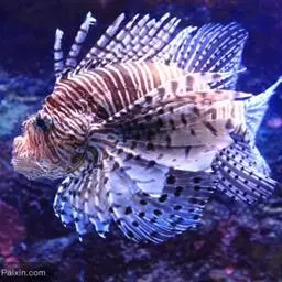 斑鳍蓑鲉是鲉科,蓑鲉属硬骨鱼。体长25-40厘米,体表黄色,布有红色至棕色条纹。背部有毒棘,胸鳍羽…