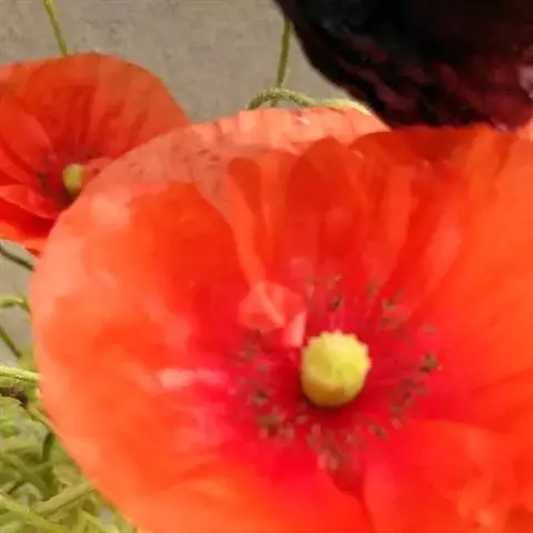 一年生草本,高50-100cm,全体被毛,茎分枝。 叶质较薄,叶羽状深裂或全裂,裂片披针形,边缘有不规则的锯齿。 花径5 -6cm,花瓣红色,有复色、间色、复瓣和重瓣品种。基部常具深紫色斑点,花丝紫红或深紫色。 蒴果宽倒卵形,长1-2.2cm。