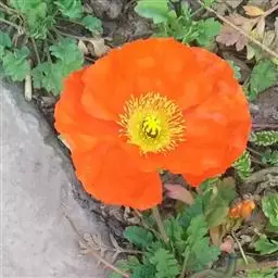 野罂粟 Banfi, Bartolucci, J.-M.Tison & Galasso)是罂粟科、高山罂粟属多年生草本植物。株高20-50厘米,具乳汁,全体被粗毛。叶生基生,具长柄;叶片轮廓卵形或长卵形、狭卵形或披针形,先端钝圆,两面疏生微硬毛。花单独顶生。萼片2,广卵形,被棕灰色硬毛,花开后脱落。花瓣4,桔黄色,倒卵形至宽倒卵形,具微波状缺刻。雄蕊多数,花丝丝状;子房具棱,柱头5-9裂。蒴果,狭倒卵形,密被视而长的硬毛,顶孔开裂。种子细小,多数。花期6-7月,果期8月。生于海拔580-3500米的林下、林缘、山坡草地。两半球的北极区及中亚和北美等地有分布。原产地俄罗斯;引入阿拉斯加、格陵兰岛和中国多地。