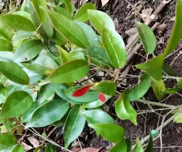 叶革质,披针形,长圆披针形或长圆倒披针形,长7-11厘米,宽2-3厘米,全缘,基部楔形或钝形,先端锐尖或短锐尖;上面深绿色,无毛,下面淡绿色,无毛或脉腋稀被丛毛;主脉在上面显著,在下面凸起,侧脉4-5对,在上面微现,在下面显著;叶柄长1-1.5厘米,细瘦,无毛。