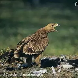 白肩雕:又名御雕,是大型猛禽。体长73-84厘米。体羽黑褐色,头和颈较淡,肩部有明显的白斑,在黑褐…
