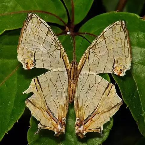 这种原产于特立尼达岛的猫头鹰蝶扮成毒蛇的样子 ,可以成功地捉弄它们的捕食者。当它们蜕下最后一层皮时,它们就进入了蛹期,并且换上了毒蛇的装扮。这种变形会持续13天。