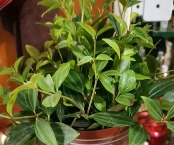 白脉椒草,也叫钻石翡翠,为胡椒科椒草属(也称豆瓣绿属)多年生草本植物,植株易丛生,高20cm~30cm,茎直立生长,红褐色。叶3~4片鸵生,具红褐色短柄,质厚,稍呈肉质,椭圆形,全缘,叶端突起,呈尖形,叶长5cm~8cm左右,宽3cm~5cm,叶色深绿,新叶略呈红褐色,在光照充足条件下尤为明显,叶面有5条凹陷的月牙形白色脉纹。穗状花序细长。