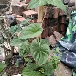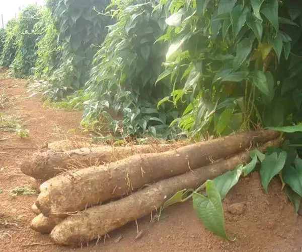 整枝搭架:薯蓣是攀缘植物,苗高30厘米前,必须搭架,架高1.5-1.7厘米,架材入土深20-30厘米。常搭成人字架或四角架。种块发芽时,一般可伸出1条主茎,但有时也可伸出2条以上,相应会产生2-3个块茎,相互争夺养分,使每个块茎又细又小,影响优质生产,应在出苗后,立即拔除多余的茎蔓,只留1个粗壮的主茎。有的品种侧枝过多,中后期要适当摘去下部侧枝,以及主茎与侧枝的顶头。零余子大量形成,影响块茎生长,一般可控制在1500-2250千克/公顷。