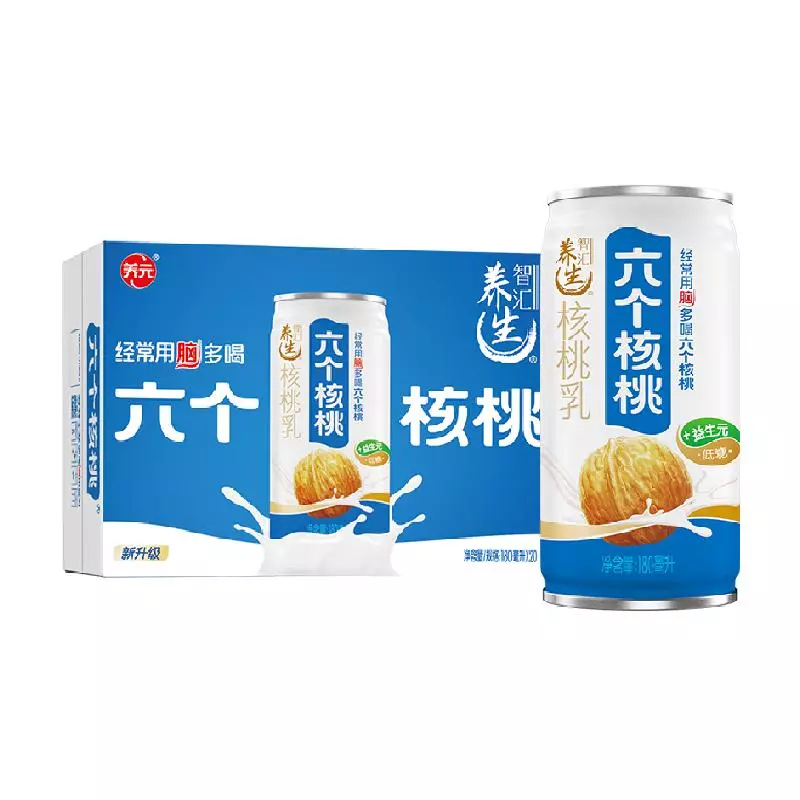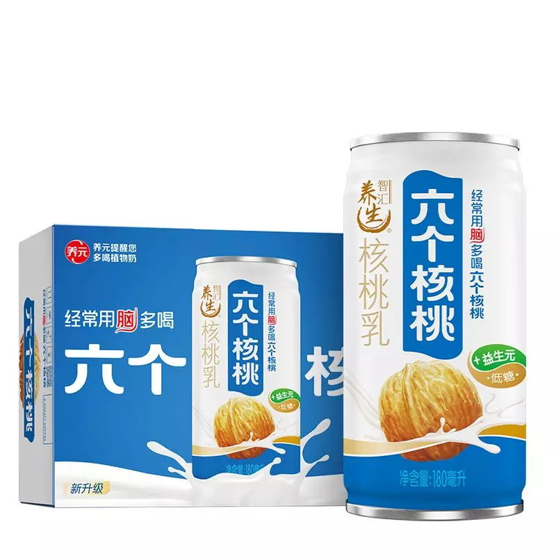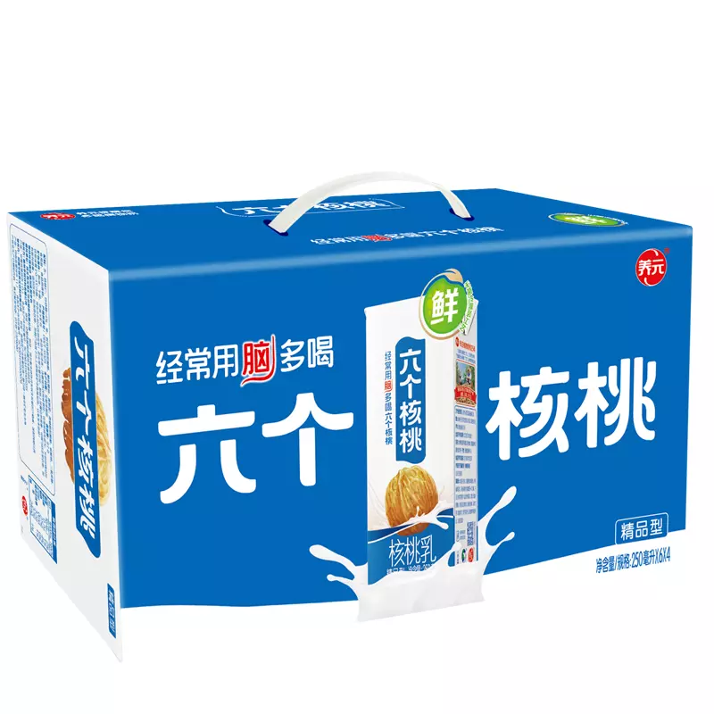 六个核桃是河北养元智汇饮品股份有限公司推出的一款核桃乳饮品,口感醇香,因富含对大脑有益的不饱和脂肪酸而深得消费者青睐,是植物蛋白饮料行业的领军品牌。六个核桃运用独创的【5·3·28】核桃乳生产工艺,有效地解决了核桃本身营养不易吸收、携带不便、口感涩腻的问题