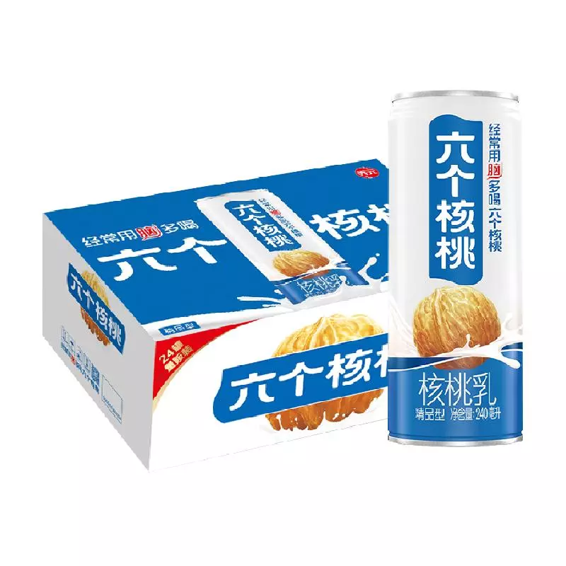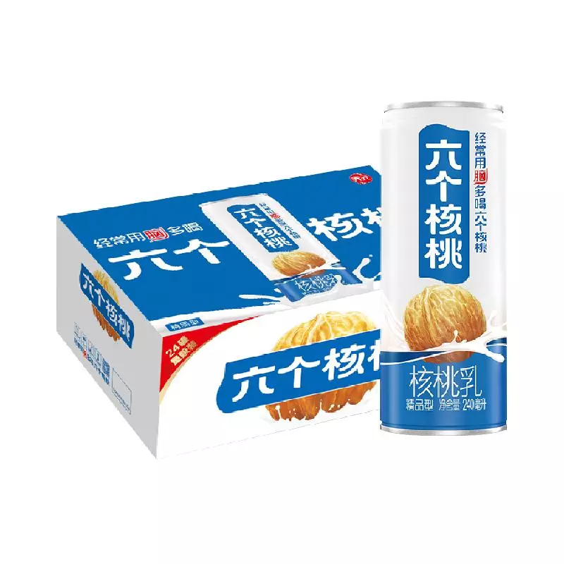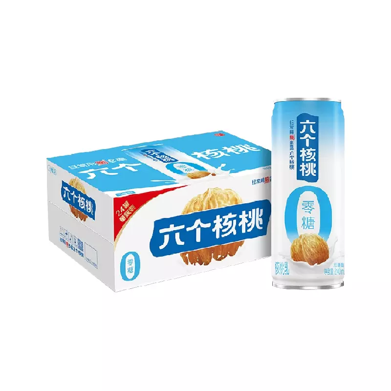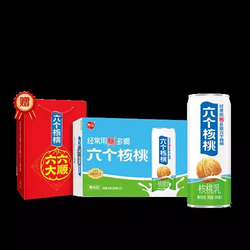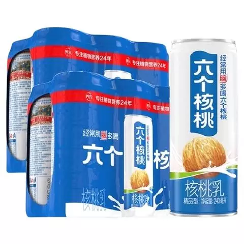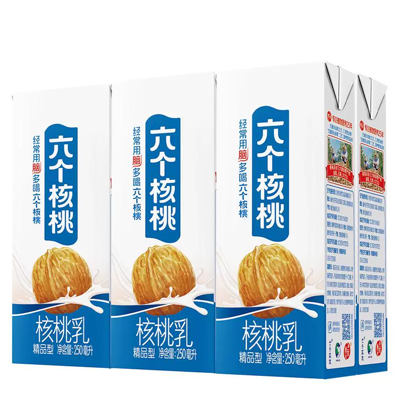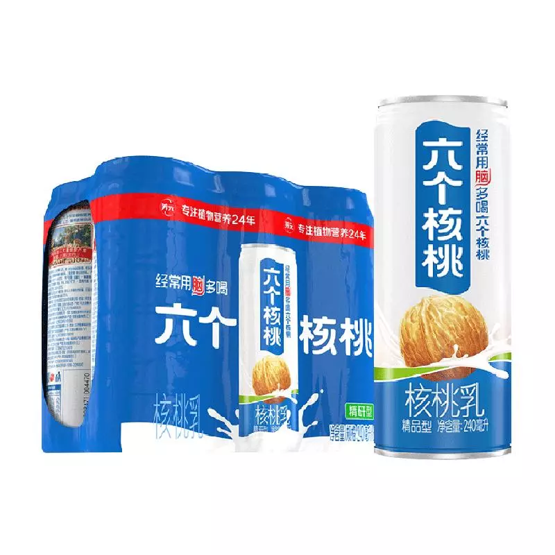 六个核桃是河北养元智汇饮品股份有限公司生产的一种核桃植物蛋白饮料,能够有效改善大脑疲乏状态,适合学生、白领等用脑人群饮用。六个核桃分为无糖型和低糖型,是植物蛋白饮料行业具有广泛影响力的品牌。