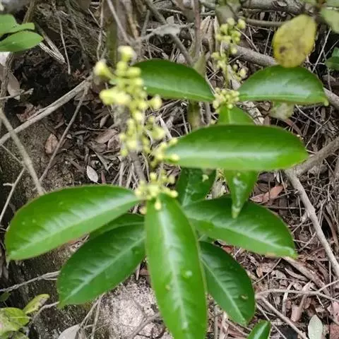 聚伞花伞腋生或侧生,通常有3花,总花梗长3~6毫米,花梗长约3毫米,关节位于花梗顶端;花单性异株,黄绿色,萼卵状三角形,先端钝圆,花瓣长椭圆形至倒披针形,先端钝圆,边缘啮蚀状;花盘肉质杯状,边缘不裂; 雄花:花丝丝状,具乳突,长3、4毫米,着生于花盘边缘,花药卵圆形,不育雌蕊长约2 毫米,雌花:不育雄蕊长约1.5毫米,子房近 球形,花柱柱状,柱头盘状,先端常3浅裂。