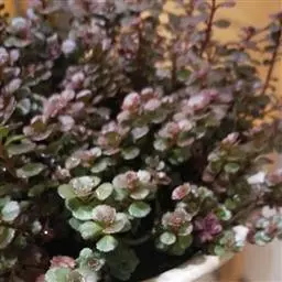 圆叶景天,景天科常绿多年生肉质草本植物,匍匐型生长,叶片对生,尖端钝圆,全光照条件下,叶片秋季变红,…