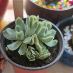 吉娃莲,景天科拟石莲花属,别名:吉娃娃,吉娃莲,植株小型,无茎的莲座叶盘非常紧凑。卵形叶较厚,带小尖,…