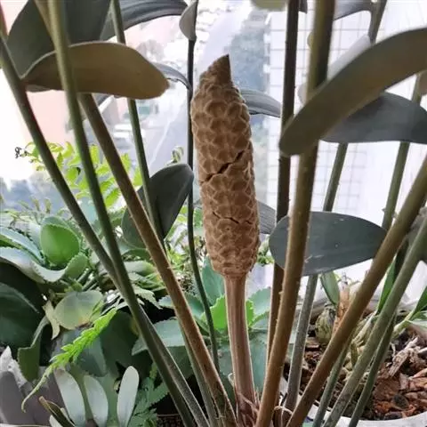 石山苏铁是苏铁科苏铁属植物,树干矮小,基部膨大成卵状茎或盘状茎,上部逐渐缩成圆柱形或卵状圆柱形,…