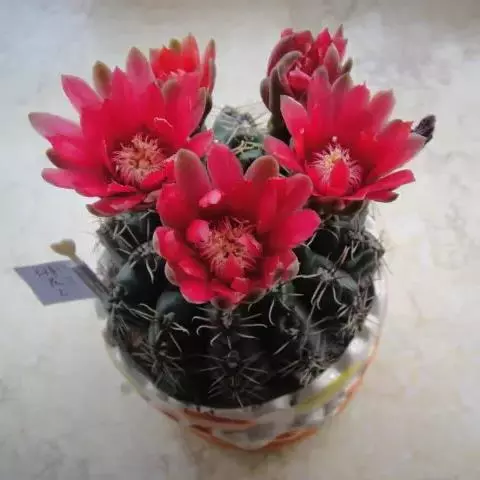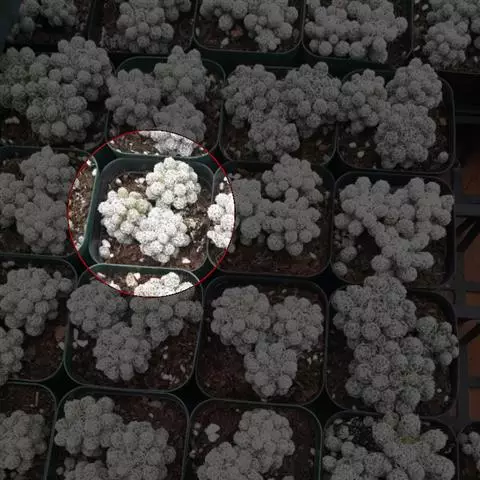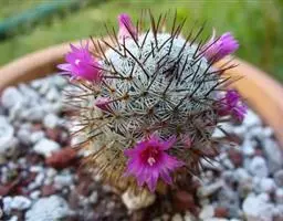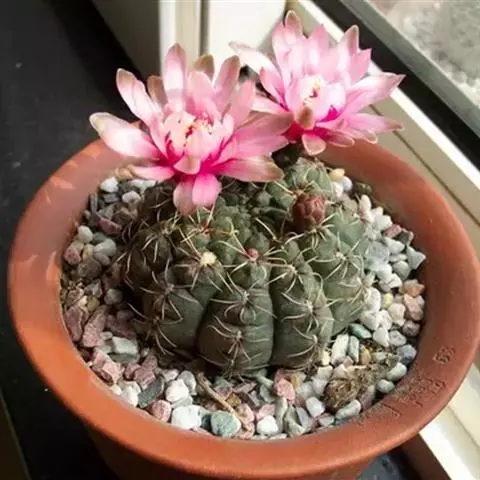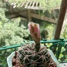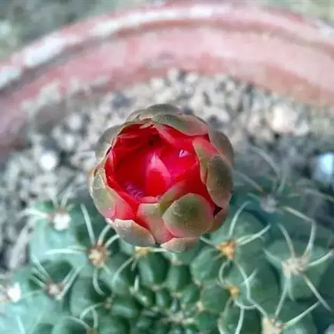 绯花玉 Speg.)是仙人掌科、裸萼球属多肉植物,植株呈扁球形,表皮墨绿色,刺针状,…