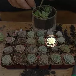 灯美人是景天科的园艺品种,多肉植物。叶片近柱状,丛生,在日照时间长、温差大的环境下会呈现橙粉色。